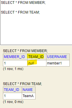 - Member 엔티티의 team 필드가 Team 엔티티를 참조한다.