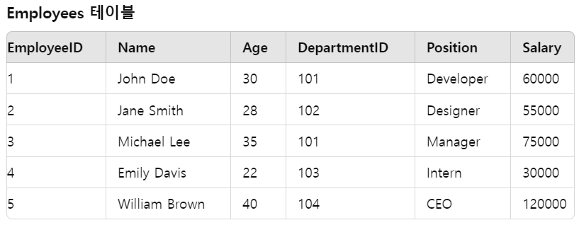 예를 들어, Employees 테이블에 EmployeeID, Name, Age와 같은 속성에 있는 값을 조회하는 거다.
